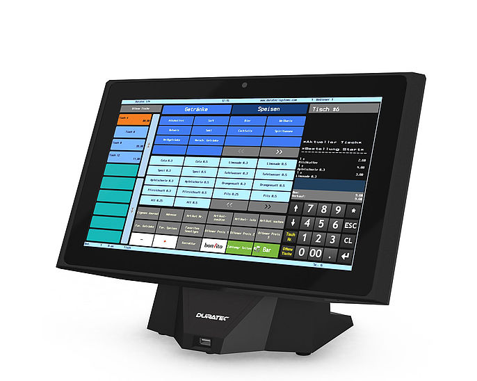 Modernes, elegantes Design und Staub- und wasserdichter Displayrahmen. Starker Prozessor für schnelles Kassieren.